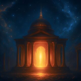 Imagine a temple of light and a peaceful starry sky.
