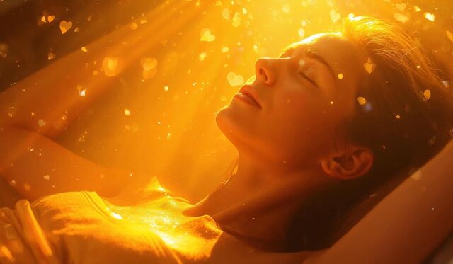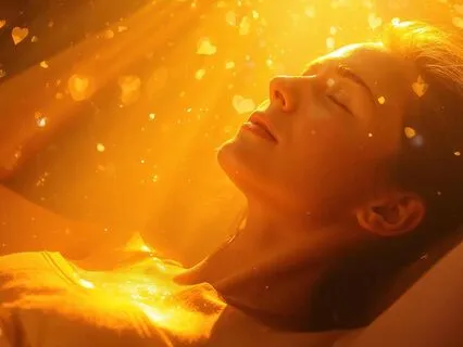 Dieses goldene Licht aus diesem wunderschönen goldenen Herzen in dich aufnehmen in jede einzelne Zelle.