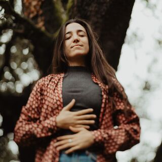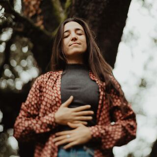 We're bringing softness into our face by allowing our eyes to rest and start to connect now with your breath,