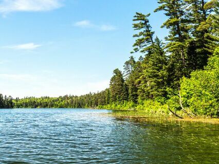 Following this path towards a lake,