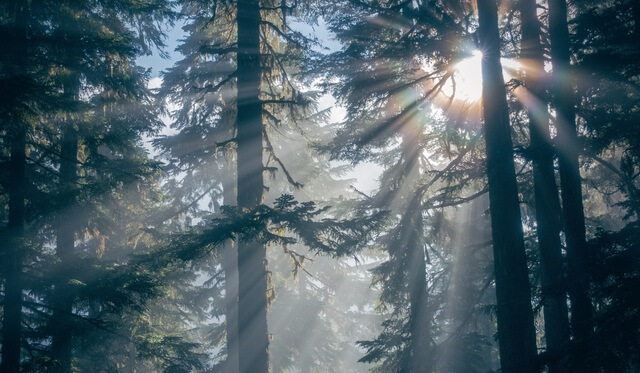 Atme ein und nimm den frischen Duft des Waldes auf.