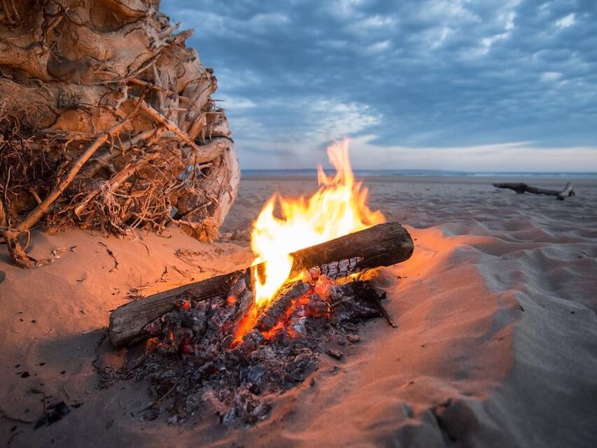 Du gehst zu dieser Feuerstelle und zündest das Holz an.
