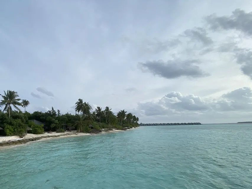Der Sand ist ganz weiß und das Meer glitzert in den verschiedenen Blautönen.