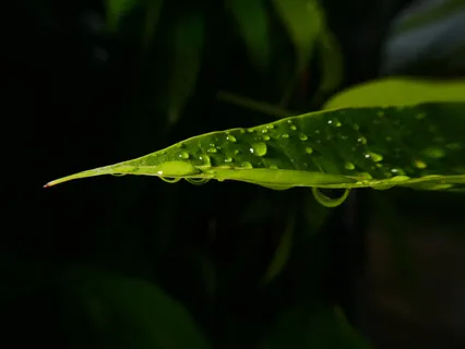 Die Tropfen von den Blättern der Bäume rinnen und auf den Boden fallen,