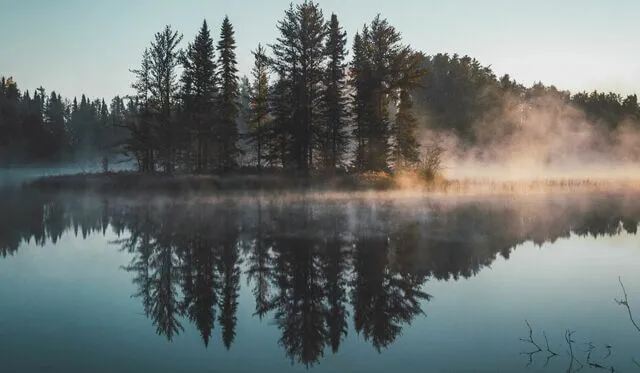 Das Wasser ist glatt wie ein Spiegel und die Morgensonne wirft sanft ihre ersten Strahlen auf die Wasseroberfläche.