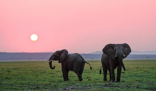 Du siehst dort einen Elefanten auf dich zukommen.