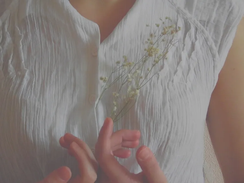 Leg deine linke Hand auf die Mitte deiner Brust und die rechte Hand auf deine linke.