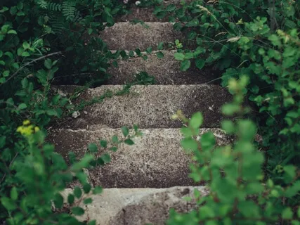 Continúas del escalón 9 descendiendo hacia el 8 y percibes el sonido de tus propios pasos y de la naturaleza que te rodea.