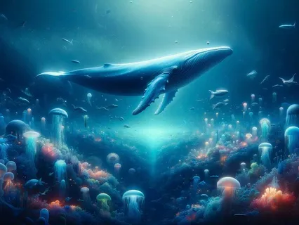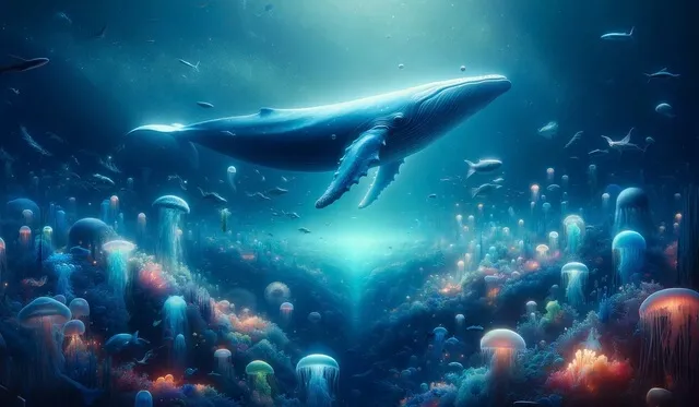 Du verwandelst dich jetzt in deiner Vorstellung in einen Blauwal im Meer.