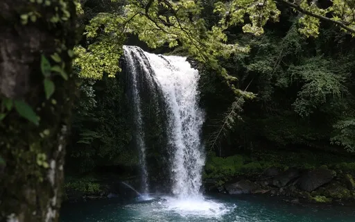 Hörst das Plätschern und Rauschen des Wasserfalls.