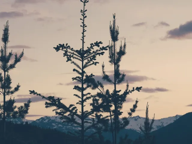Es gibt eine Lichtung zwischen den Bäumen.