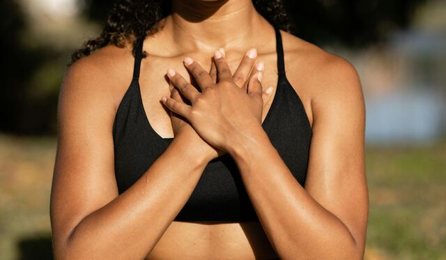 Lege nun sanft deine Hände auf deinen Brustkorb,