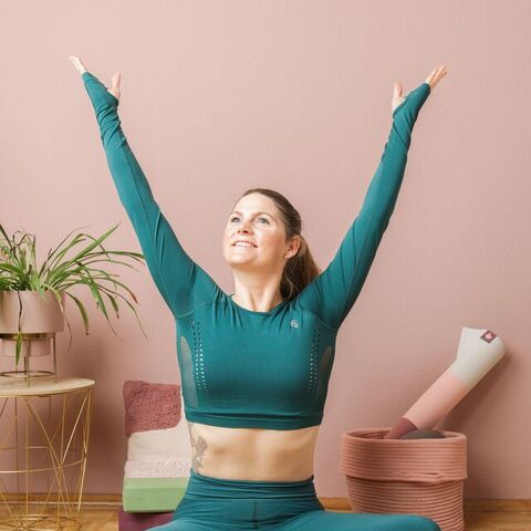 Finde eine bequeme und aufrechte Sitzposition.