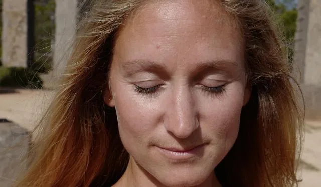 Richte Deine Wirbelsäule auf und schließe dann sanft Deine Augen.