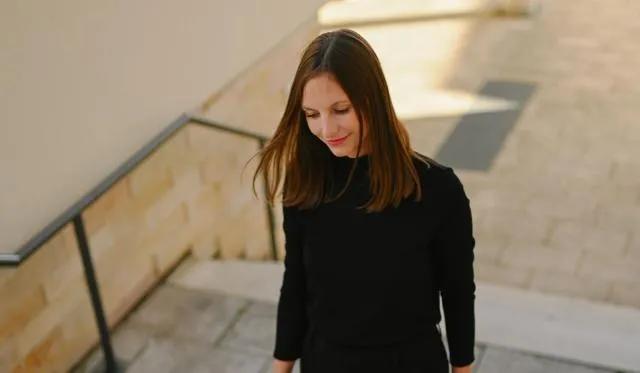 Schließ gerne deine Augen oder lass sie nach unten auf irgendeinen Punkt wandern,