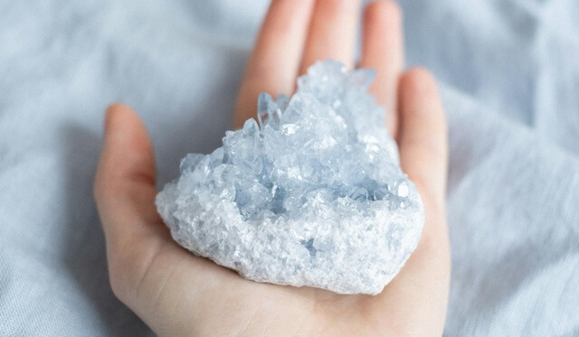 Am besten mit den Handflächen nach oben und halte deinen Kristall in deiner dominanten Hand.