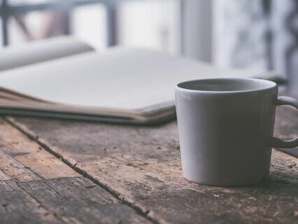 Having coffee and reading,