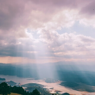 It's touching the mountain peaks and the trees.