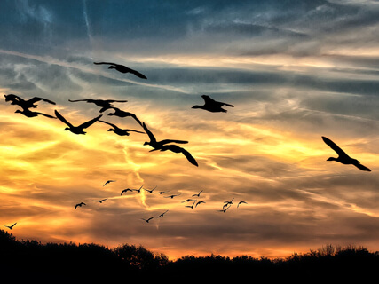 They arrive in V-shaped skeins to winter and feed on the tranquility of the estuaries,