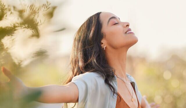 Ou colocar as palmas das mãos tocando suavemente alguma parte do seu corpo.