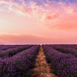 Rose and cotton candy with flowers stretching all the way to the horizon,