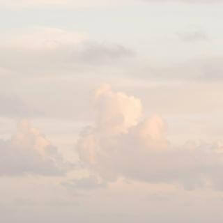 Pillowy clouds drifting overhead in a bright blue sky,