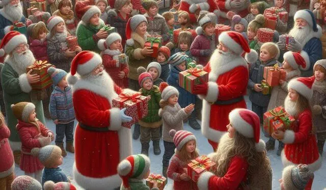 Todos quedaron fascinados y sorprendidos con millones de santas repartiendo los regalos en un segundo,
