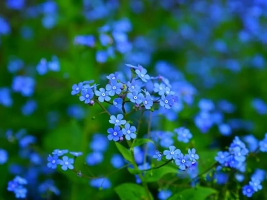 Extendemos nuestras manos para tocar estos pequeños bolibrimos que son pequeñas flores celestes que cubren todo el prado.