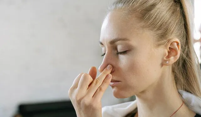 Exhala todo el aire de tus pulmones y tapa la fosa nasal derecha e inhala por la izquierda.