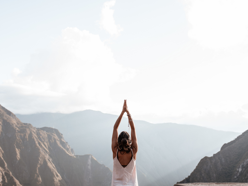 Lleva tus manos con las palmas juntas a la altura de tu corazón.