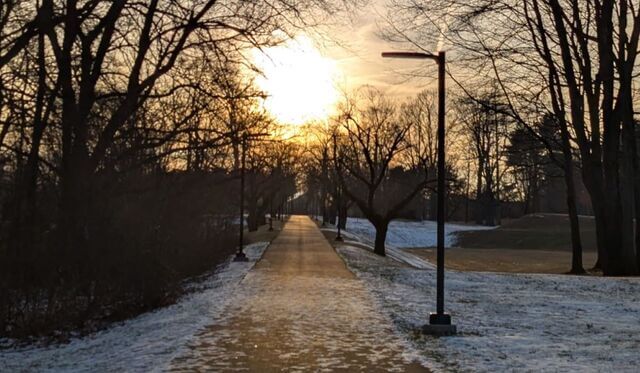 La nieve refleja una luz suave y dorada del sol de este día.