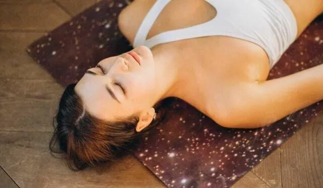 Nos tumbamos en la postura de yoga de Savasana,