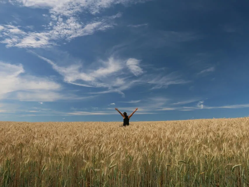 Y te dejas llevar por esta emoción y caminan juntos a través del campo.
