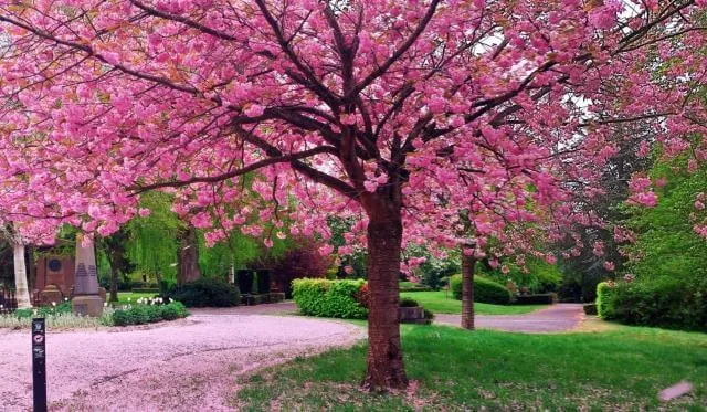 Les fleurs des cérisiers apparaissent dans toute leur beauté.