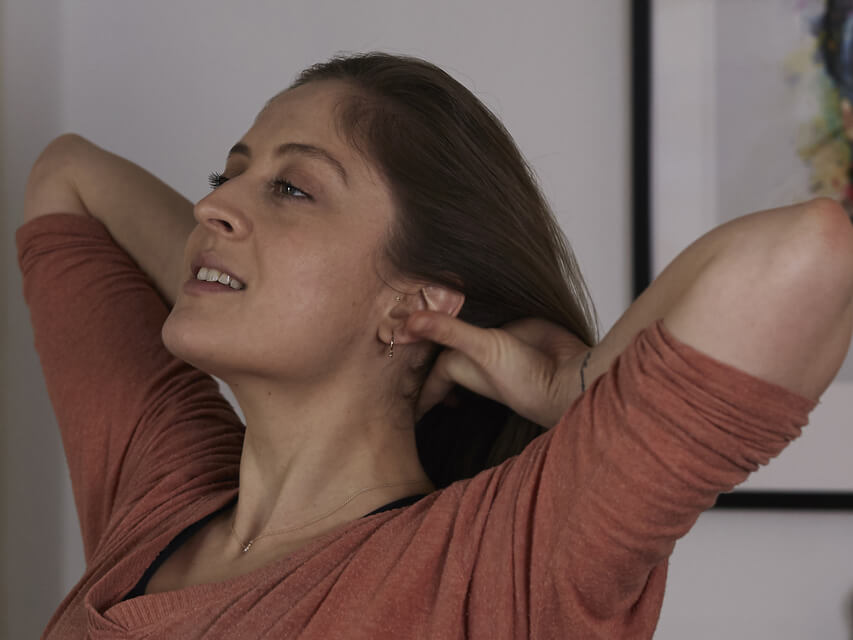 Connecting to that grounding sensation at your hips as you exhale.