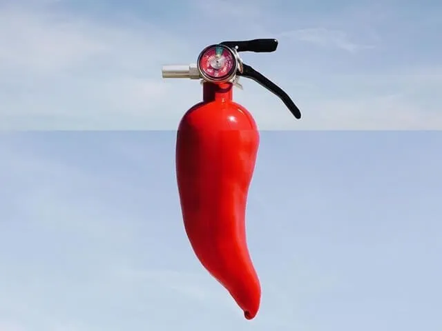 Un extincteur rouge.