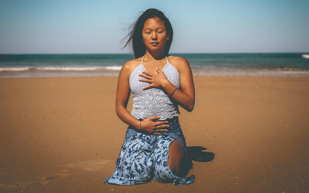 Inspirez par le nez profondément jusqu'au bas-ventre,