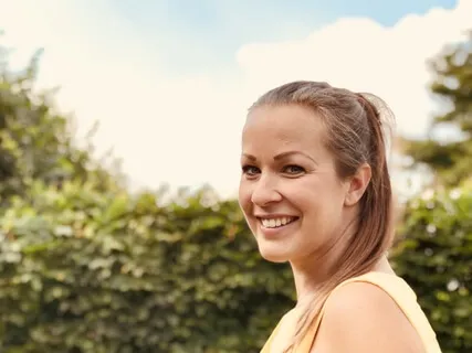 Atme mal ganz tief ein und beim Ausatmen lass mal ganz bewusst deine Schultern los.
