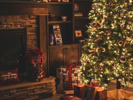 Or simply place yourself in front of your Christmas tree,