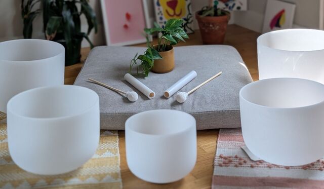 Peace and welcome, this will be a sample of a sound bath merging the healing frequencies of crystal singing bowls and plants. The sounds you'll hear will be emitted from a young Rubber Fig, and specifically, you'll be hearing the fluctuations in electricity between two electrodes that are attached to the plant, converted into music by a device I purchased. The full 8-minute song is available for premium users. The scale of the crystal singing bowls is D#4, C#4, A#4, B3, F#4, so if any of these vibrations resonate with you in a specific way, now you can find that tone and add it to your healing practice.