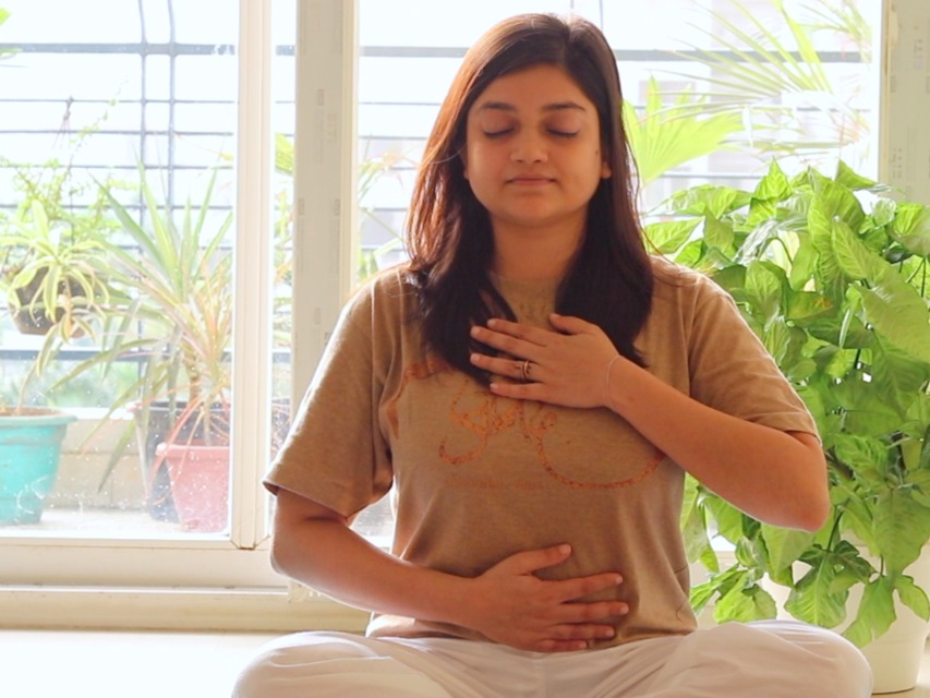 Begin by placing your right hand on your belly and your left hand on your chest and gently close your eyes.