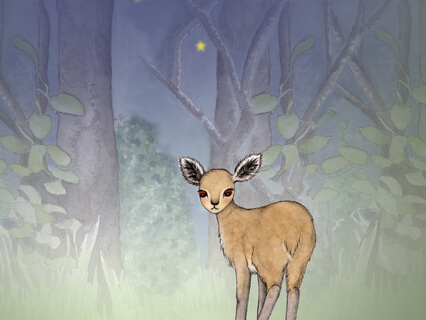 My daughter says "this is a wonderful story and it's about a little klipspringer named Kiki and she's afraid because of the nightmare but then she gets a little firefly to be her friend and .. tada .. it's great! She never has a nightmare again! I love this story..."