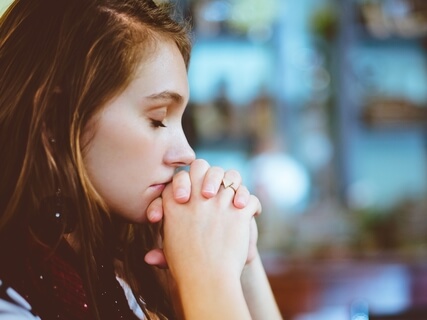 So as soon as you find a position that's comfortable you then take your left hand and place the fingertips in the very center of your forehead.