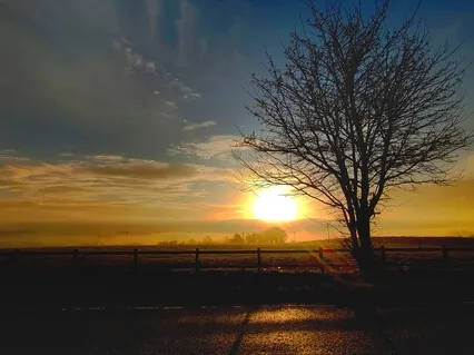 A river or laying in the fields,