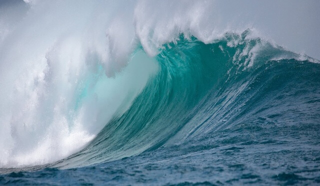 Un'onda lunga che arriva e un'onda lunga che se ne va.