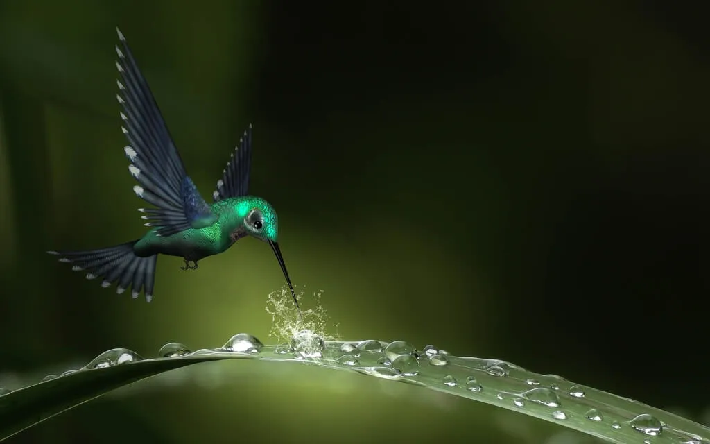 Un piccolissimo colibri si tuffò nelle acque del fiume e dopo aver preso nel becco una goccia d'acqua,