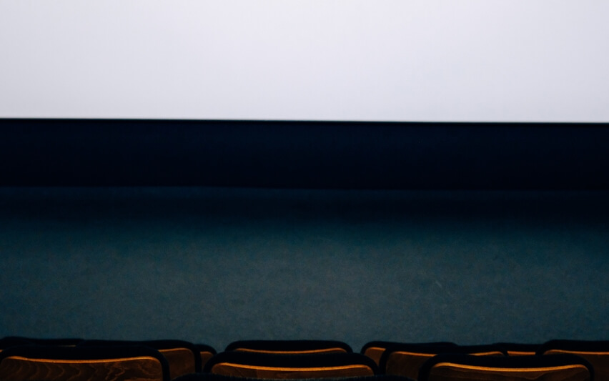 Un enorme schermo da cinema sospeso lì nello spazio di fronte a te e proprio davanti a questo grande bianco schermo c'è una bella panchina.