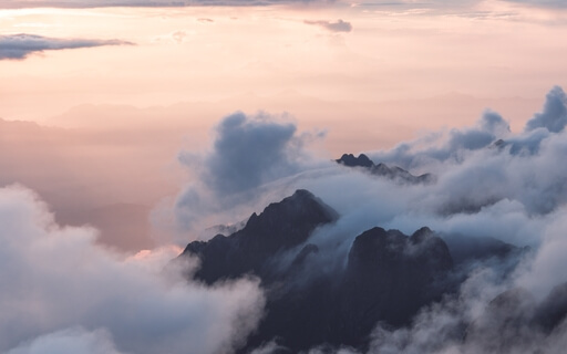 See yourself sitting on the peak of a mountain in a meditative position so high that there's mist at the top of the mountain.