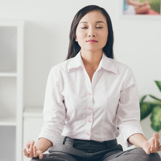 Let's start by making sure our body is ready to enter into a restorative state Bring your spine straight and relax your shoulders and neck Soften the muscles in your hands Relax your tongue and jaw Feel your feet on the ground and soften your eye gaze Let's take three deep breaths in through the nose and out through the mouth and out through the mouth And on your third breath gently close your eyes Now we'll start inhaling for two seconds and exhaling for four seconds In for two through the nose,