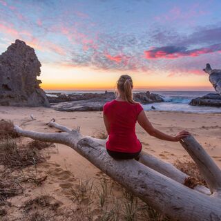 Imagine yourself lying down near a peaceful shoreline.